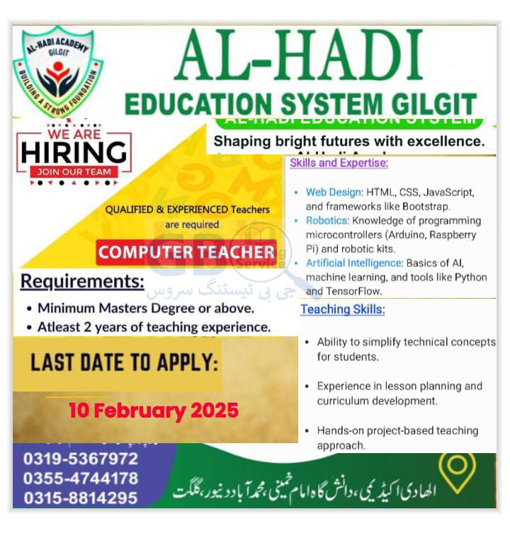 Are you passionate about technology and education? Do you dream of making a meaningful impact in the lives of students? Al-Hadi Education System Gilgit offers an exciting opportunity for skilled professionals to join their team as a Computer Teacher and play a pivotal role in shaping bright futures.