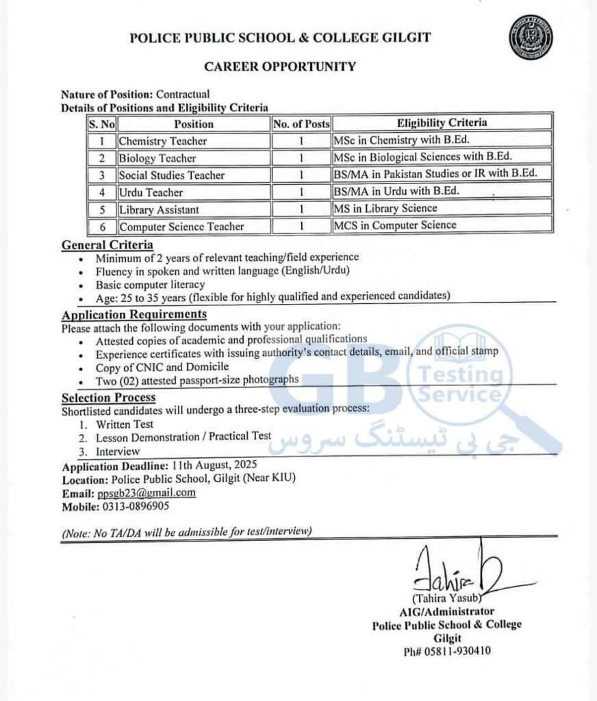 1 thought on “📢 Career Opportunity at Police Public School & College Gilgit”