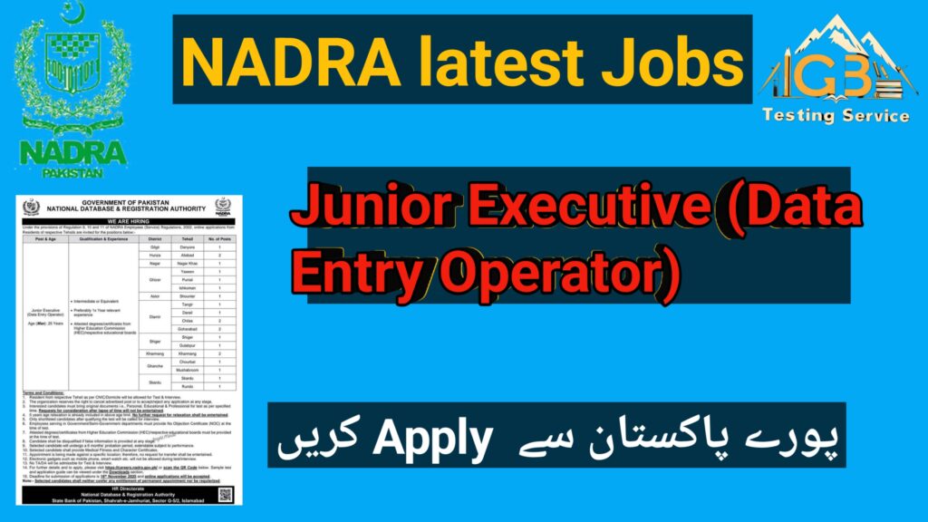 š NADRA Jobs 2025 ā Junior Executive (Data Entry Operator) Vacancies in Gilgit-Baltistan